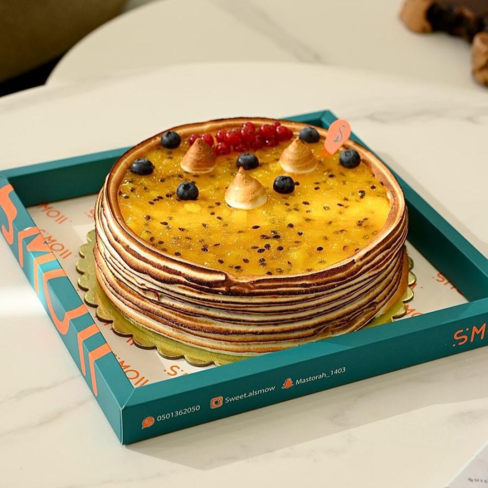 اطلب الآن تشيز كيك باشن فروت طازج واستمتع بنكهات استوائية فاخرة توصل لين باب بيتك دلّع ضيافتك أو غلّفها كهدية راقية متجر سويت السمو – التفاصيل تفرق 🎁✨