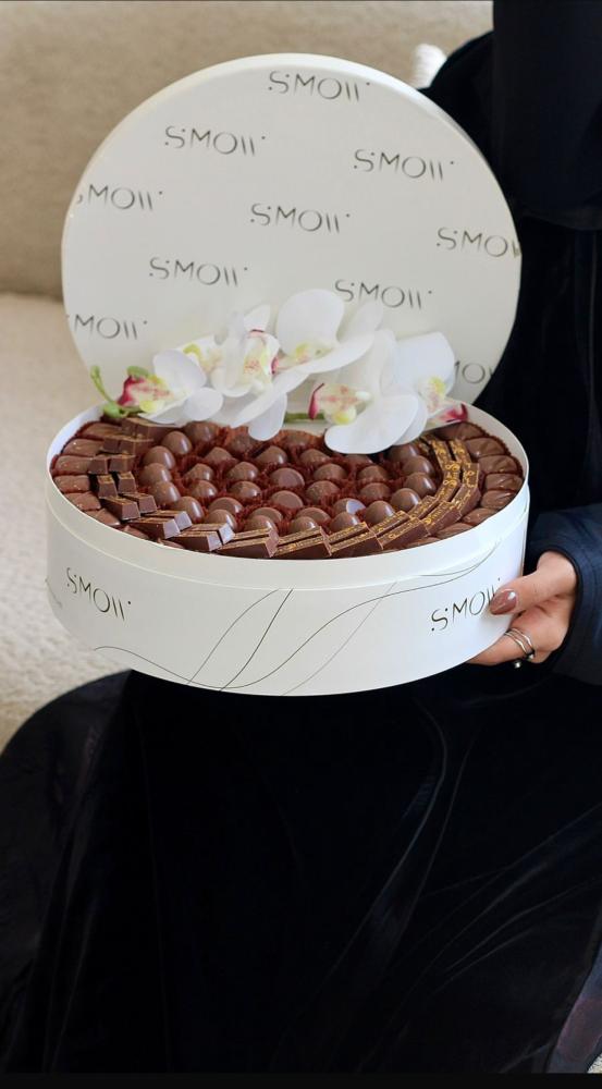 • لمسة جمالية: زهور أوركيد بيضاء تزيد من فخامة الصندوق.