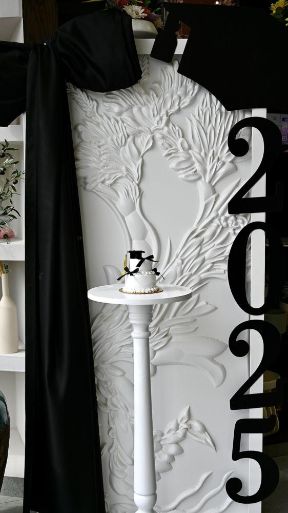 - تصميم فريد ومبتكر يعكس فرحة التخرج بلمسة فنية أنيقة.